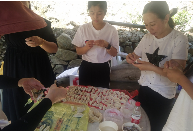 上午達到目的地后,各小組有條不紊的開始了第一項活動-自主烹飪。大家烹飪的內容也是豐富多彩,有燒烤、火鍋、包餃子、還有本地特色豬肉飯。平常不怎么露手的各位可都深藏不露,在公司里研發中心團隊可是有著燒烤達人美稱的。今年又新晉一組美食達人團隊總裁、人力組,因為他們成功打破了往年幾次燒豬肉飯失敗案例,這個逆襲非常漂亮!毫不低調的說風馳這個大家庭里有著廚師級別的成員也是高手云集的。經過一番忙碌之后,大家心滿意足的享受完一起親手烹飪的美食。