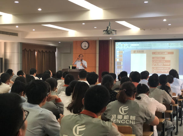 2019年6月14晚,在人力部張西西的力邀下,江總百忙之中趕到公司為大家上了一堂生動(dòng)有趣地培訓(xùn),培訓(xùn)的主題是《風(fēng)馳產(chǎn)品的歷史發(fā)展之路》。